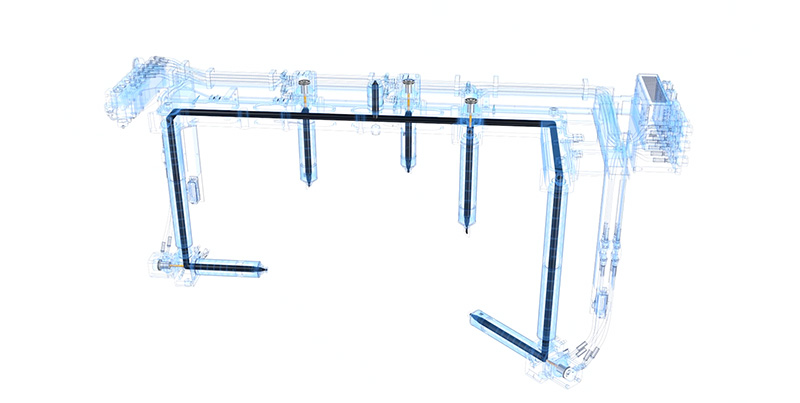 2. The structure of TINA AM Angled system is improved by forming the angle with Nozzle-Manifold-Nozzle structure instead of Angled Manifold-Nozzle structure, thus reduces the mold cutout, increases the mold strength and simplifies the assembly.