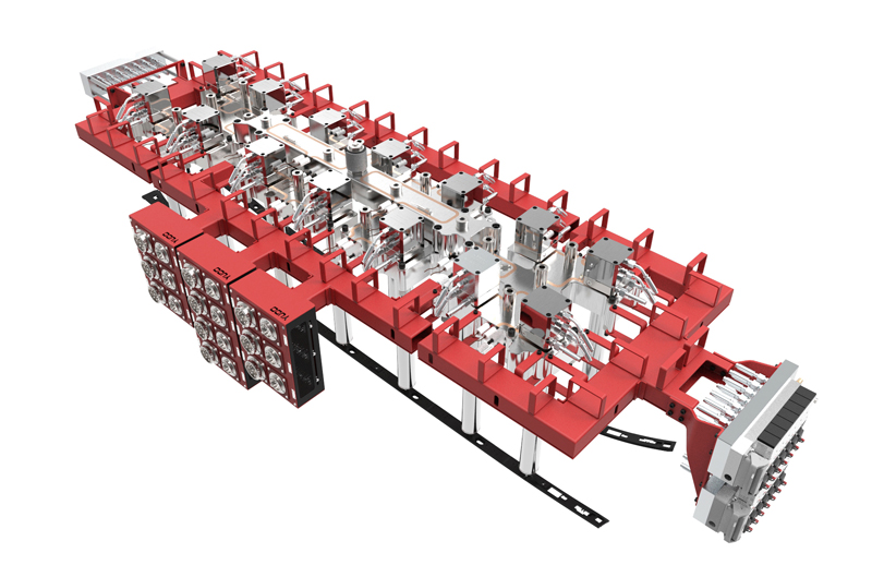 NO.2: TINA AM system is a pre-wired, unitized system, which is convenient for assembly and disassembly. Also it can prevent any possible leakage happened due to the missing of components during assembly or maintenance. The air and cooling channels are connected by pipes, which leads to simple mold design and machining.