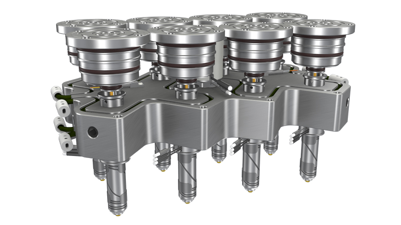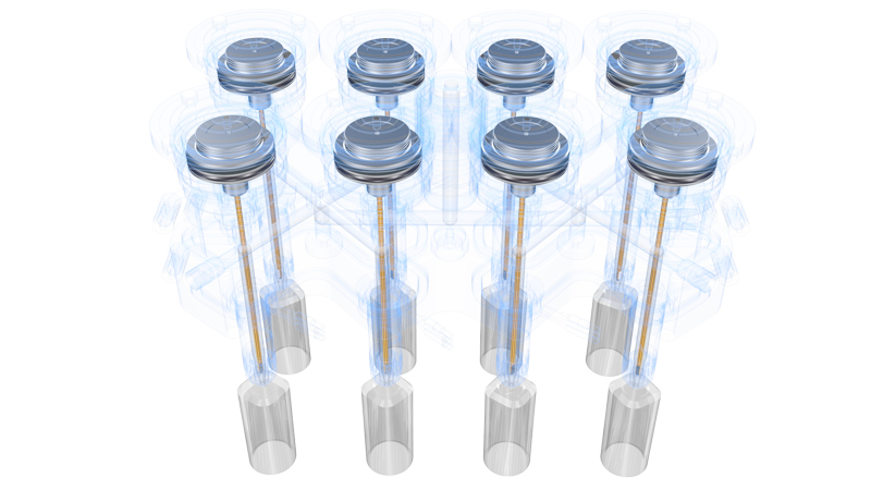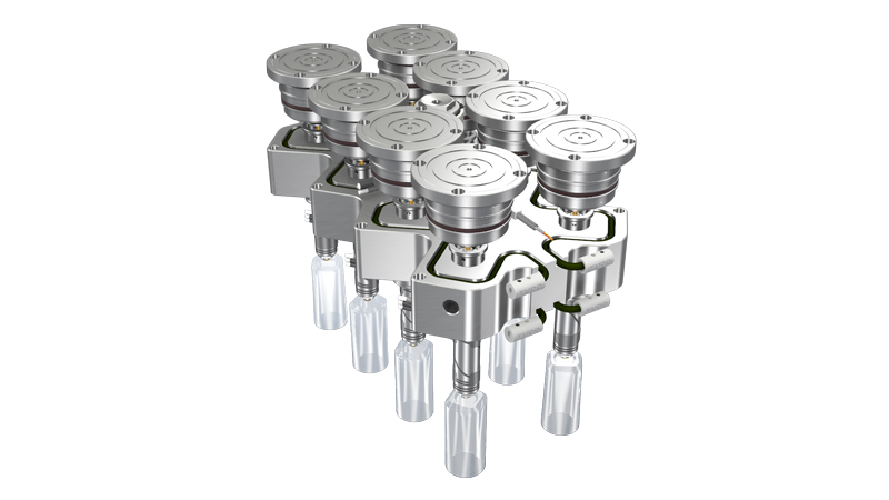 3. There are 8 cavities in this mold, manifold is made with two-layer channels, and cylinders are controlled by single one solenoid valve so as to guarantee stable and balanced filling.