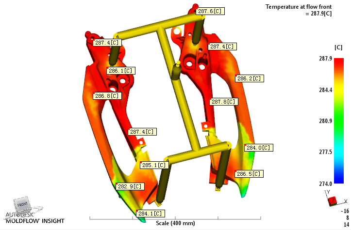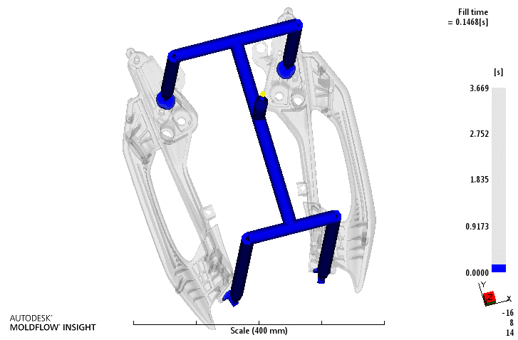 NO.1: The product is automotive component, with complex structure and injected resin of PA6+GF45%. It has a high requirement for abrasive resistant and corrosion resistant. In order to ensure product quality, we do mold flow analysis for the most suitable size of the nozzle to avoid incomplete filling, while applying special material for the tip to ensure enough temperature and preventing the damage caused by the GF material.