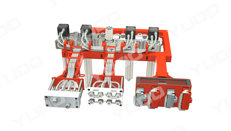 1.The injection part is in complex structure with heavy weight and long flow path, thus the injection molding solution is four drops valve system with sequence control to avoid welding lines.