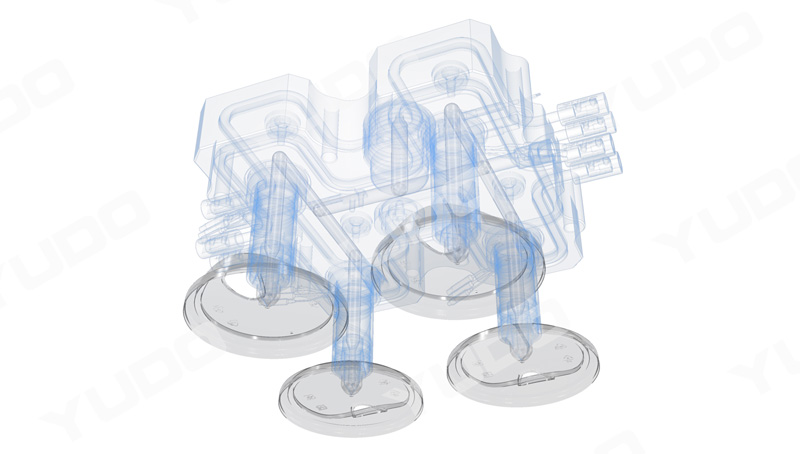 1. The injection part is cup lid with thin wall 0.45mm, thus the injection would be difficult and has a high demand on resin volume and resin hold time in hot runner system;