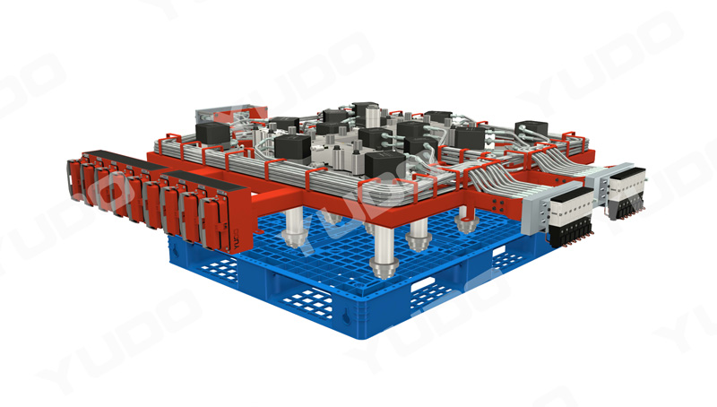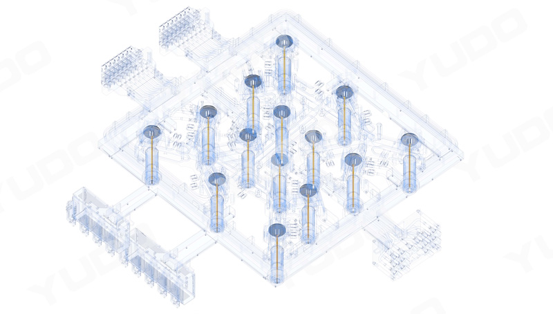 2. The manifold is designed in superposed double levels to avoid decent ration problem caused by long gate distance and at the same time, meet the requirement of balanced filling.